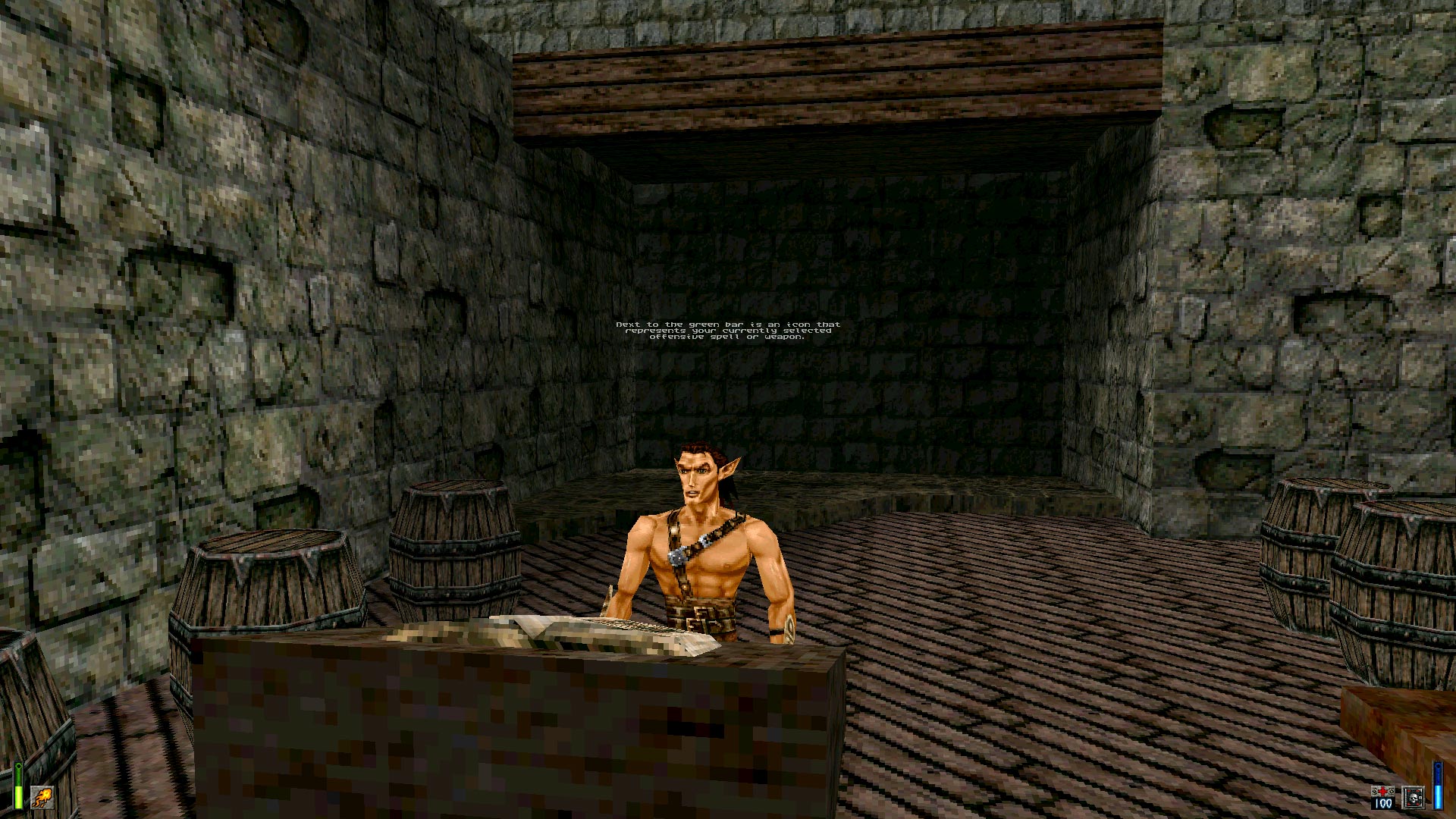In Heretic II you play Corvus, the Elf who was exiled to the Outer Worlds but managed to find his way back home. Unfortunately, home is not the place it used to be: the land is beset by a dark magical plague and Corvus' brethren have mutated beyond recognition and have become insane with bloodlust. Enter Corvus, our hero.